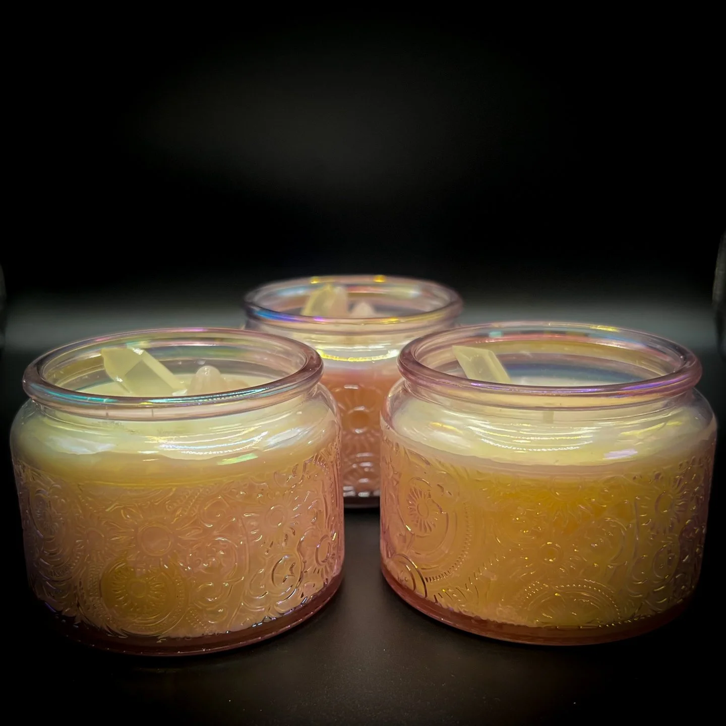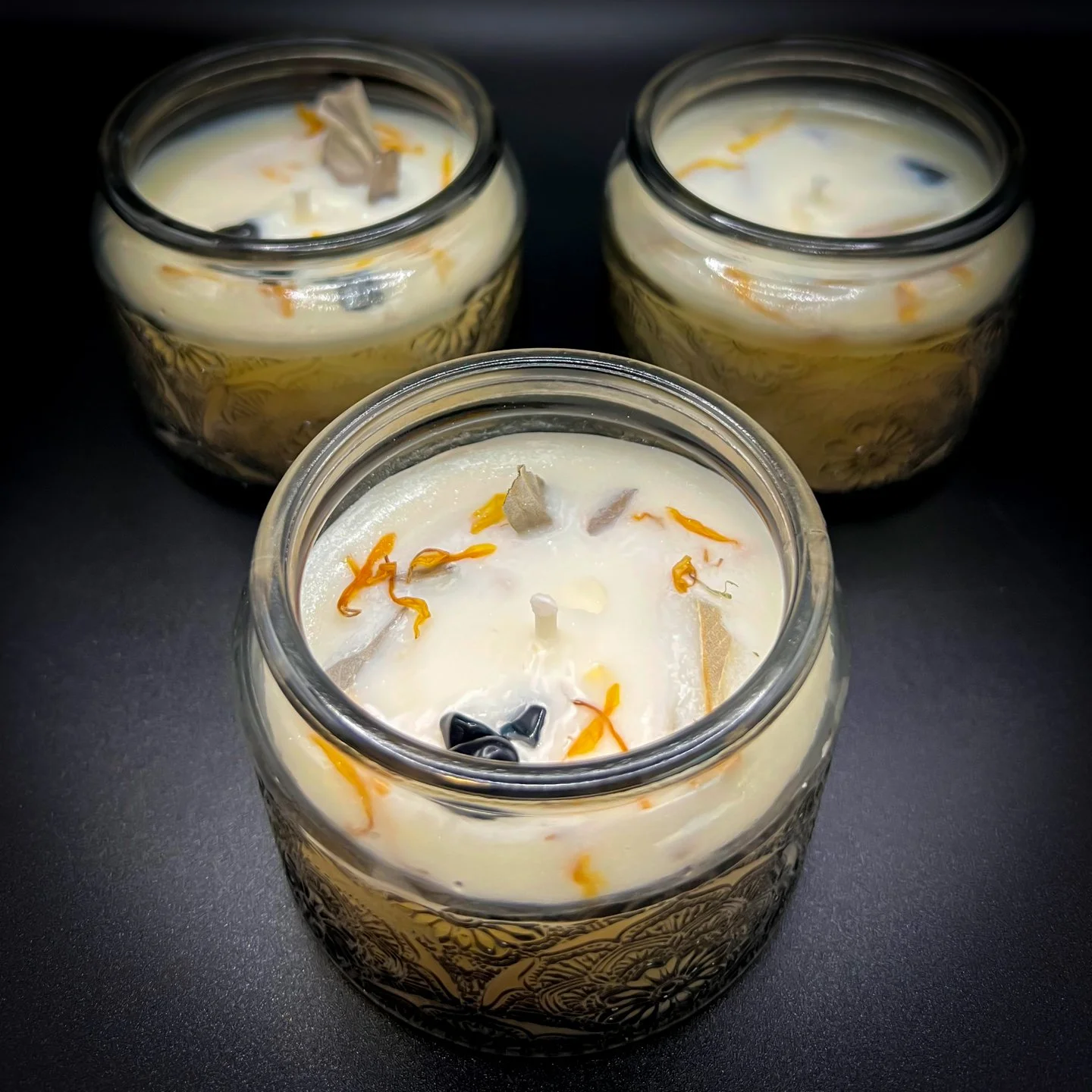 100% pure soy wax candles made with luxurious natural fragrances, sustainable crackling wood wicks, hand collected stones and shells, and a bit of shimmering mica. All arranged delicately in a recycled glass vessel perfectly prepared to enhance your space.